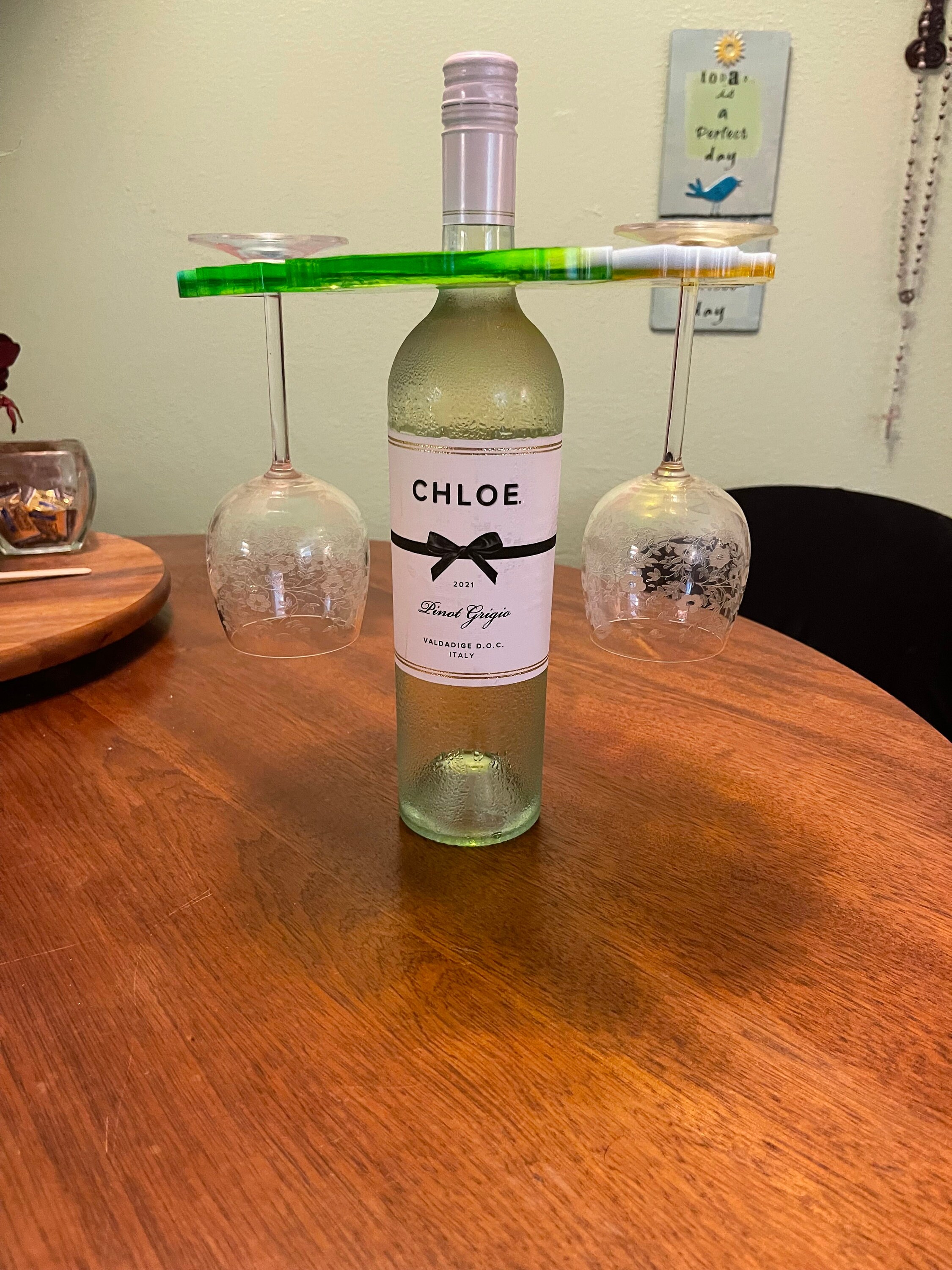 Wine bottle glass holder for presentation