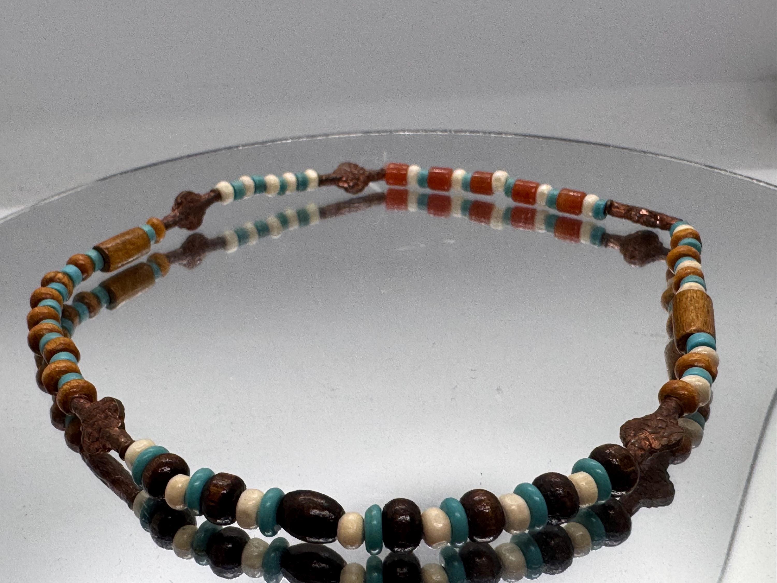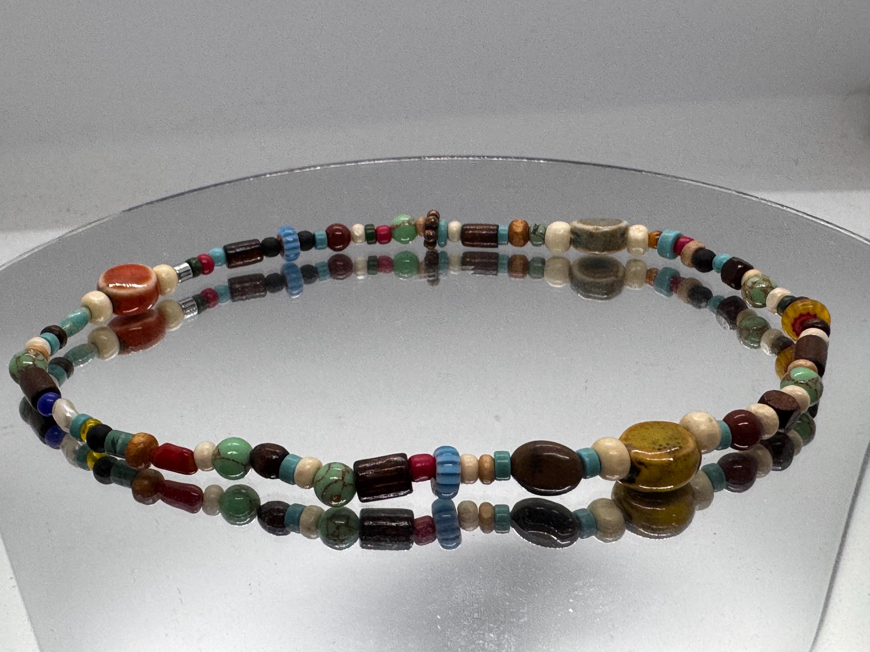 Hand beaded natural stone, wood, glass and metal beads